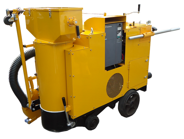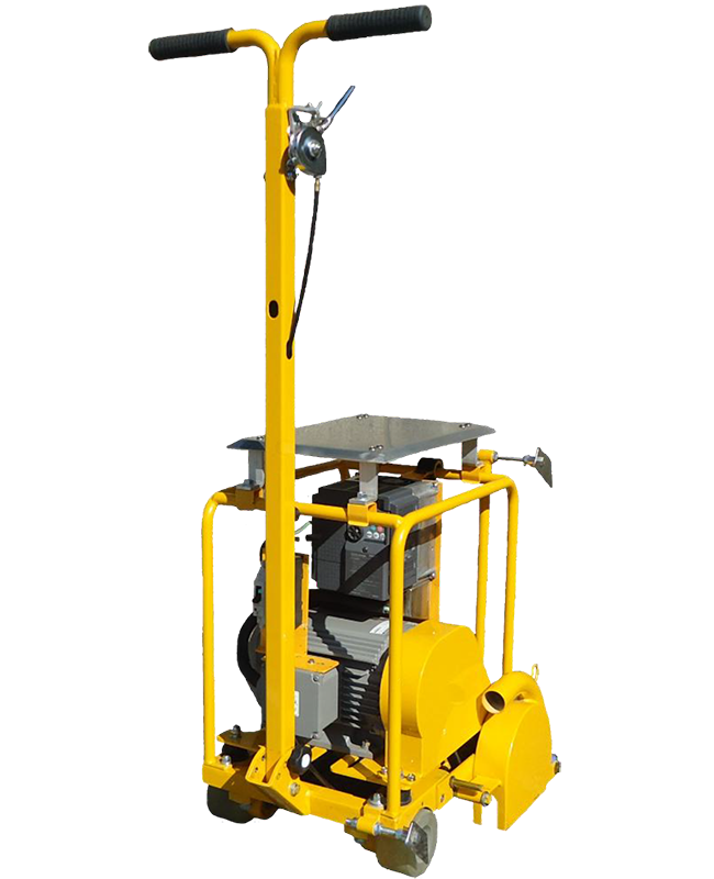 大型配送センター内での「目地切り」からトンネル内切断やビル解体での室内での床切断などで排気ガスを出さない本格的な電動乾式カッターです。