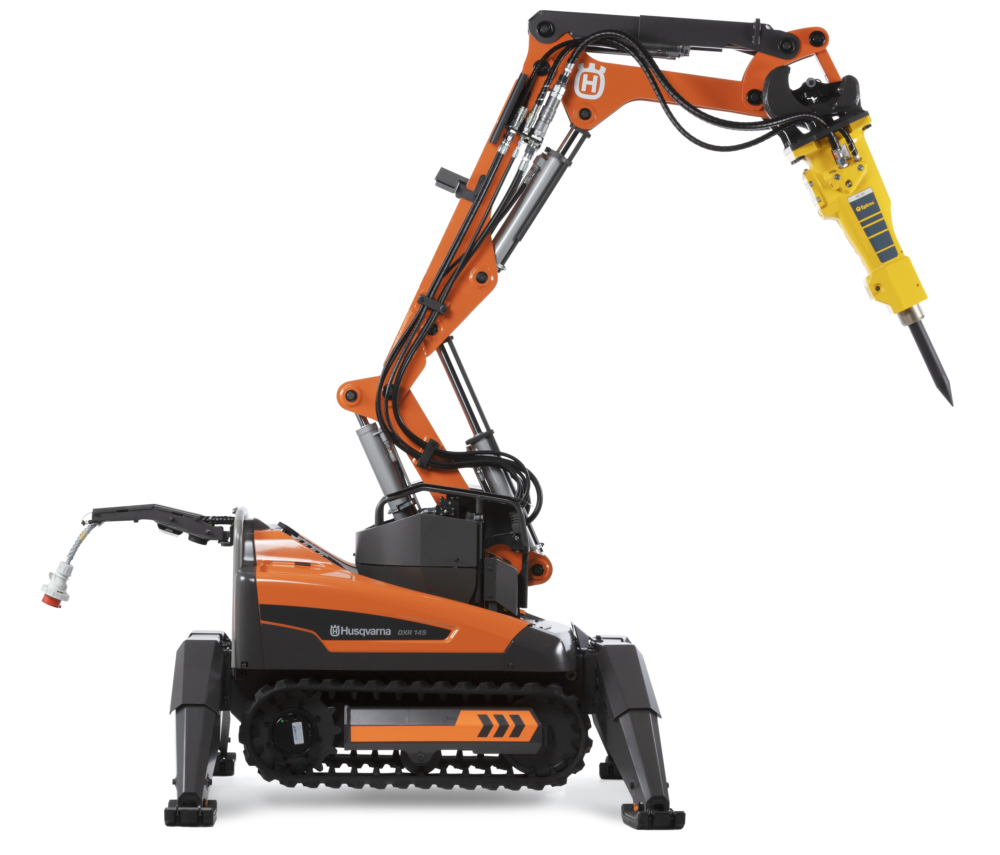 DXR95は室内解体、DXR145は建設および処理産業向けの汎用解体ロボットです。ブレーカー、コンパクトで汎用性の高いクラッシャー、鋼材カッターなどの各種ツールと組み合わせることができます。