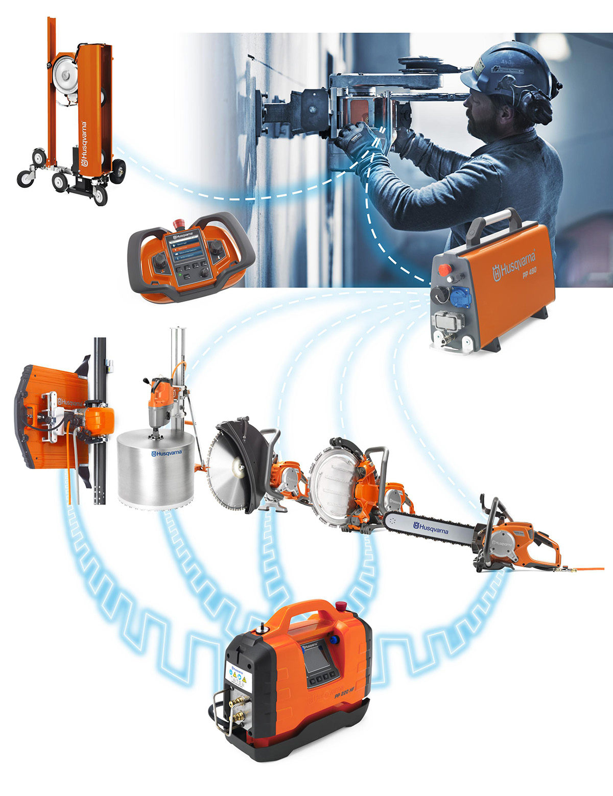 高周波ウォールソー WS220や高周波コアドリル「DM700」を初め、高周波パワーカッター K7000、高周波リングカッター K7000Ring、高周波チェーンソー K7000Chainを総称して「Prime」シリーズと呼びます。