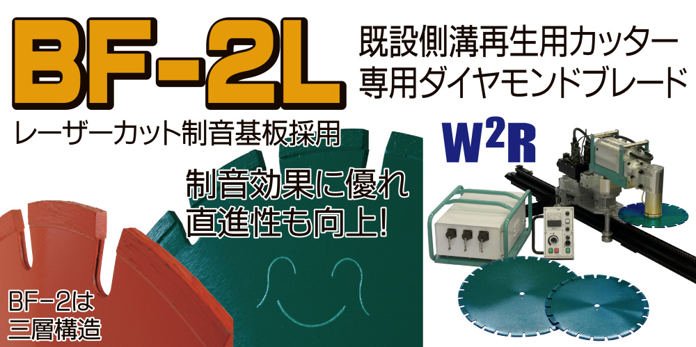 既設側溝再生・改修工事を画期的に変化させたW2R工法で使用されるカッターとダイヤモンドブレードです。