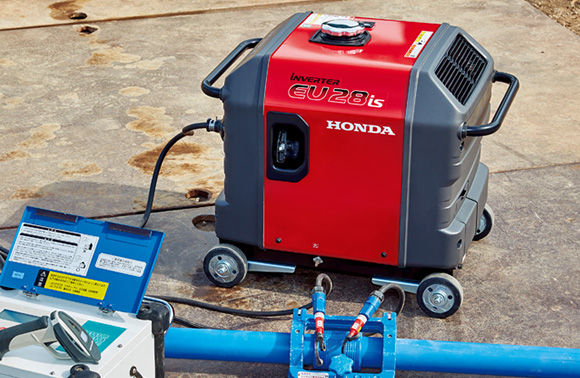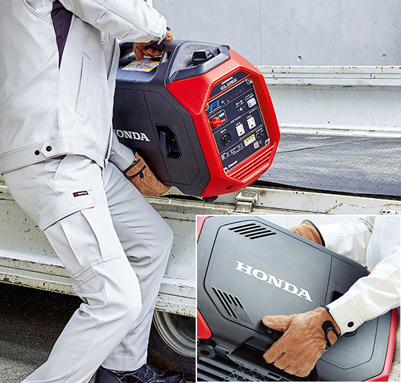 A:防水仕様ではありません。水しぶきや雨が直接発電機に当たると、感電や機械トラブルが発生する可能性がありますので、水・雨を避けてご使用ください。: