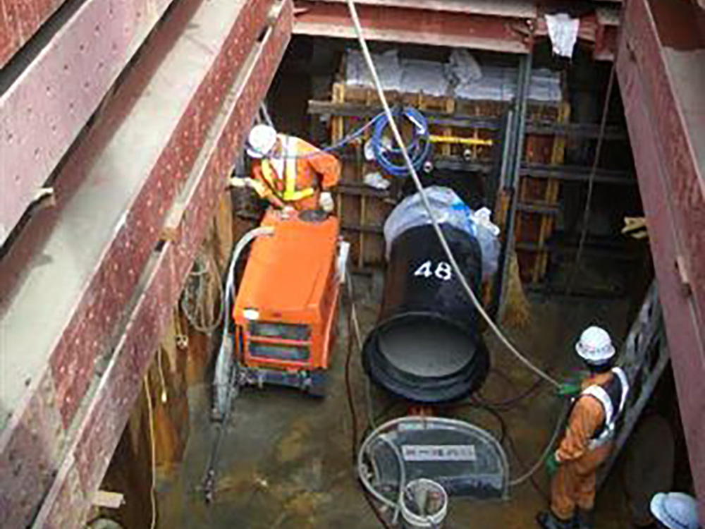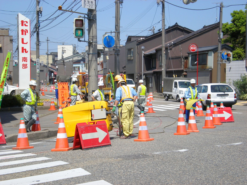A:この工法の機械の動力はAC200V(又は400V)のモータを使用している為排気ガスは排出されません。