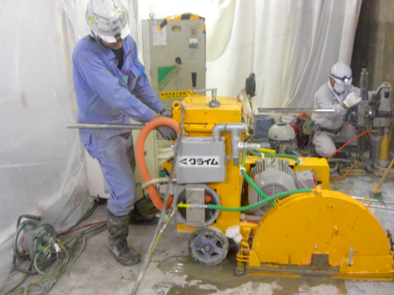 AC200V電源だけで施工可能なコンクリートカッター(機械によりAC400Vも可能)
