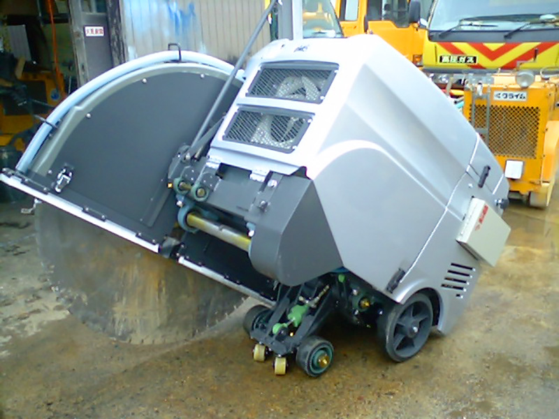 A:通常のコンクリリートカッターは動力にガソリンエンジンを使用していますが、電動コンクリートカッターの動力はAC200V(又は400V)のモータを使用しています。